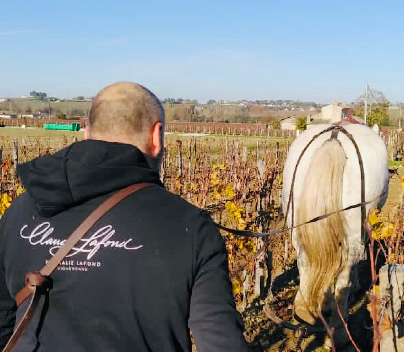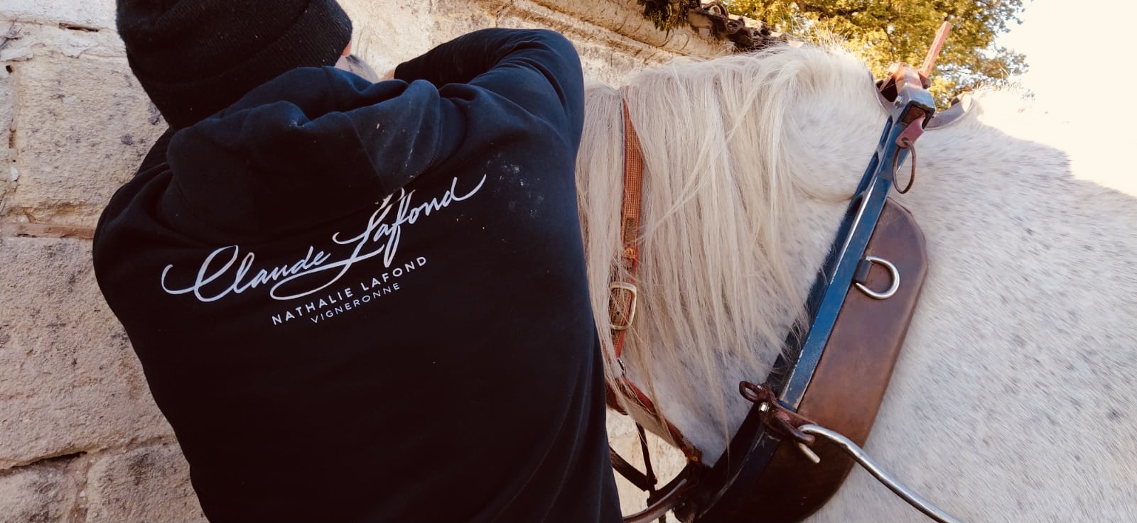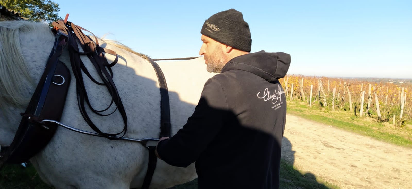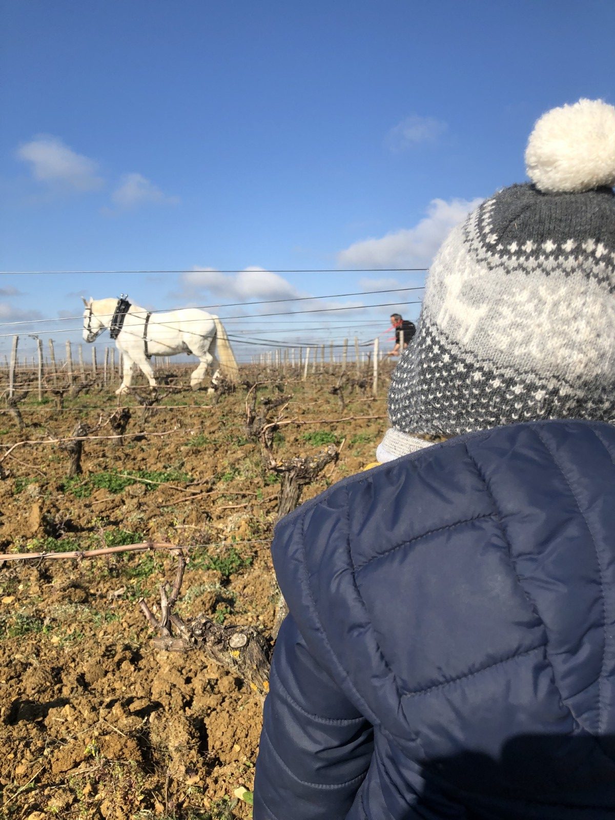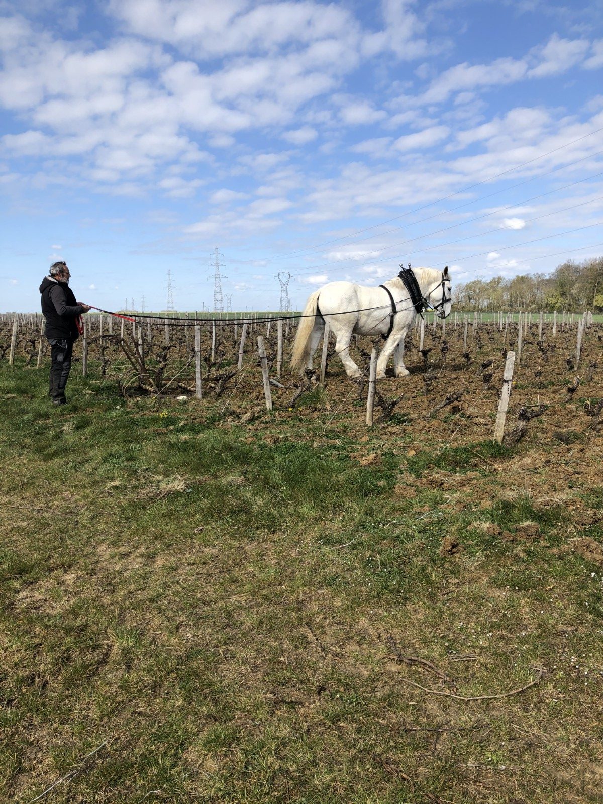 Nous utilisons également la traction animale, grâce à Argentine notre trait comtoise, dans certaines parcelles, nous permettant ainsi de limiter l’empreinte carbone de quelques cuvées.